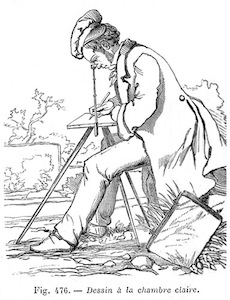 les technologies et l'activité artistique depuis toujours intégration de la dernière technologie de la pratique des arts 5e siècle av. J.-C. deus ex machina le vol ou la descente des dieux des plates-formes roulantes |  | 17e siècle utilisation d’une Caméra Obscura par Vermeer la camera lucida (chambre claire) |