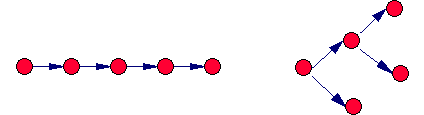 Les événements remarquables de l'intrigue qui sont représentés par de points sur la ligne de temps de la chronologie sont transformés des en noeuds dans une arborescence :