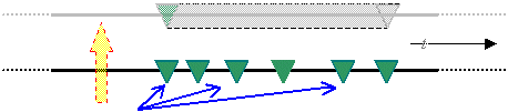 projetés sur l'axe de l'Histoire (flèches bleues)L'objectif de la fiction est de donner l'illusion de l'Histoire du monde réel dont seraient extraits les évènements relatés :