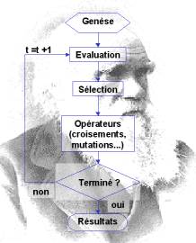 la solution est approchée par « bonds » successifs de mutations et sélection des individus les plus adaptées