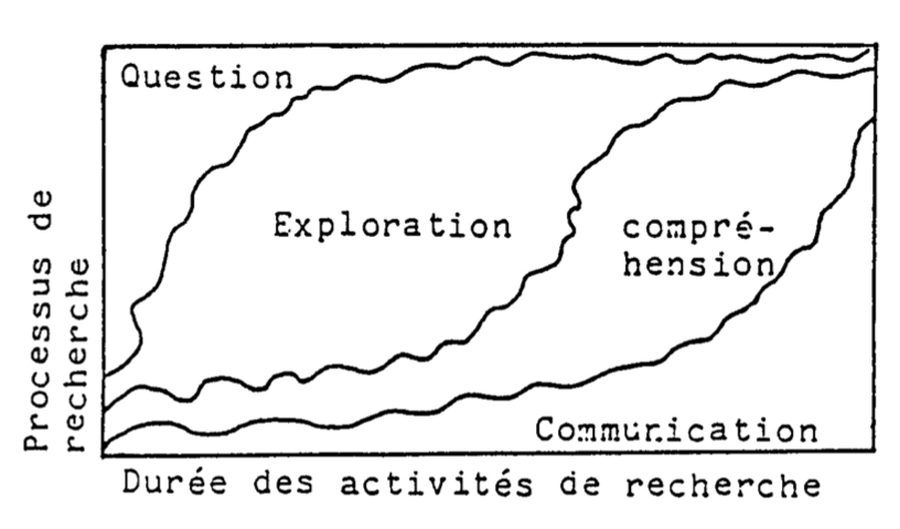 1) prise de conscience du problème le chercheur prend conscience d'une question, d'un problème ou d'un intérêt ressenti de manière subjective (p. 22) vécu de manière préconsciente, pré-verbale dans un contexte expérientiel puis devient de plus en plus préoccupé par le désir de trouver une réponse état de crise -> obsession verbalisation chercher des mots, des concepts des significations pour traduire cette expérience la prise de conscience de plus en plus accentuée d’une question de recherche est en elle-même une découverte même si elle prévaut tout au début, la prise de conscience s’accentue tout au long de la démarche de recherche émergence de questions ou d'affirmations spécifiques qui sont révisées ou clarifiées selon le sens qu'elles prennent pour l'individu de manière provisoire sujettes à des changements au fil de l'expérience 2) exploration par l'expérience cerner le problème s’immerger dans la situation pour en saisir toute la complexité engagement personnel écouter, observer, suivre son intuition, prendre des risques l'attention devient de plus en plus sélective toute pensée, signification, sensation ou expérience qui aide nous attire synchronicité excitation, émotivité, authenticité collecter des données sans nécessairement chercher à les ordonner en système la subjectivité du chercheur est sollicitée de façon particulière cette méthode de recherche demande de croire en sa propre expérience et de ne pas avoir peur d'explorer les avenues de la connaissance parfois inconnues telles que l'intuition et l'inconscient il peut arriver que le chercheur fasse l'expérience de l'ambivalence et du chaos retourner fréquemment au problème de départ permet de se rendre compte de notre évolution de nos changements de nos apprentissages permet de vérifier les progrès de décider de continuer dans la même direction ou d'explorer d'autres avenues émergence de nouvelles significations, méthodes et idées alors que les anciennes s'estompent laisser une place au hasard, essai erreur 3) la compréhension étape de l'éclaircissement, de la conceptualisation et de l'intégration des découvertes rassembler toutes les ressources, documents, expériences, visions, souvenirs pour les examiner en profondeur se forger graduellement une impression globale ou holistique une vision intégrée intégration, clarification et articulation des données significatives de l'exploration pour soi-même identification et différenciation des dimensions fondamentales des réalités perçues leur signification phase qui donne préséance aux processus rationnels de pensée aux processus de représentation conceptuelle tenter de formaliser sa pensée, sa compréhension du phénomène par des schémas ou par l’écriture étape de saisie objective appelant la formalisation la compréhension incite à «visiter» des modèles théoriques, des oeuvres, des auteurs, des personnes concernées par le phénomène à l’étude pour comparer ce que «l'exploration ou le processus de l'expérience» a permis de sentir et de saisir de façon parfois fugace retarder cette étape le plus possible pour éviter la « contamination » 4) la communication étape de mise en forme et de diffusion acte d'engagement désir de faire valoir la signification de ses expriences et découvertes projection dans le domaine public de la quête personnelle trouver les mots, trouver la forme écriture d’une thèse, d’un article ou d’un livre production d'une oeuvre le processus de recherche comporte nécessairement une opération de diffusion de présentation publique des résultats de la démarche peur du rejet, de la désapprobation, du ridicule aucun contrôle sur les réactions des autres circularité de la démarche l'approche heuristique est découpée en étapes exposées successivement toutefois ce processus de recherche n'est pas linéaire -> circulaire les étapes doivent être comprises comme faisant partie de cycles comme des opérations récurrentes ou intératives plutôt que successives même si une étape du processus a momentanément prédominance sur les autres ils sont tous en interaction les uns avec les autres (p.27) il apparaît que les étapes 2 (exploration) et 3 (compréhension) sont centrales et qu’elles sont itérées plusieurs fois les temps d'exploration (de l'intérieur) et de compréhension (de conceptualisation et de rencontre de textes, d'auteurs, d'oeuvres) reviennent de manière récurrente tout au long de tels processus -> transformations de la question et du chercheur alternances sentiment | pensée | implication | réflexion | dialogue | solitude | clarté | incertitude | étendue | profondeur | expansion | consolidation | exploration | focalisation | réception | réponse | précaution | risque | retrait | croissance | etc. source : notes de cours fournies par Pierrre Gosselin (2010) |