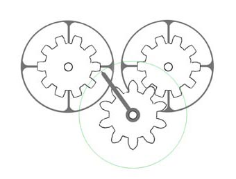Ces six disques qui représentent respectivement de droite à gauche les unités, les dizaines, les centaines et ainsi de suite, sont animés par cinq roues intermédiaires à dix dents. Chacune de ces roues est mise en mouvement par une dent de la roue précédente, située entre le 9 et le 0, ce qui provoque une rotation d’un dixième de tour de la roue suivante vers la gauche. Pour effectuer une soustraction, il fallait inverser la procédure.
