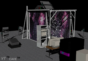 Le système CAVE a été développé au Electronic Visualization Laboratory de l’Université de l’Illinois. Cette chambre est composée de trois écrans de trois mètres sur trois.