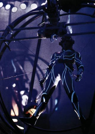 Des tissus tendus en constituent les murs, et derrière ceux-ci se trouvent trois projecteurs à une résolution de 1280 pixels sur 1024. Voir autres schémas.